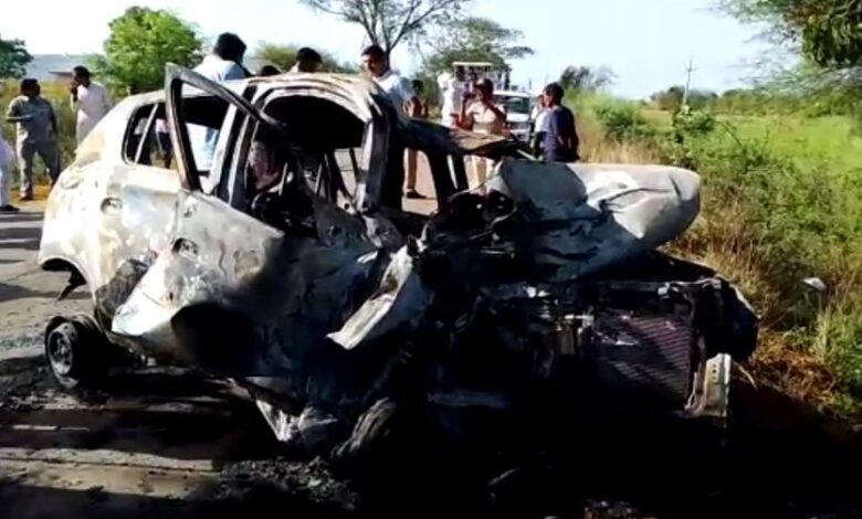 पेड़ से टकराने के बाद कार में लगी आग, चार लोग जिंदा जले